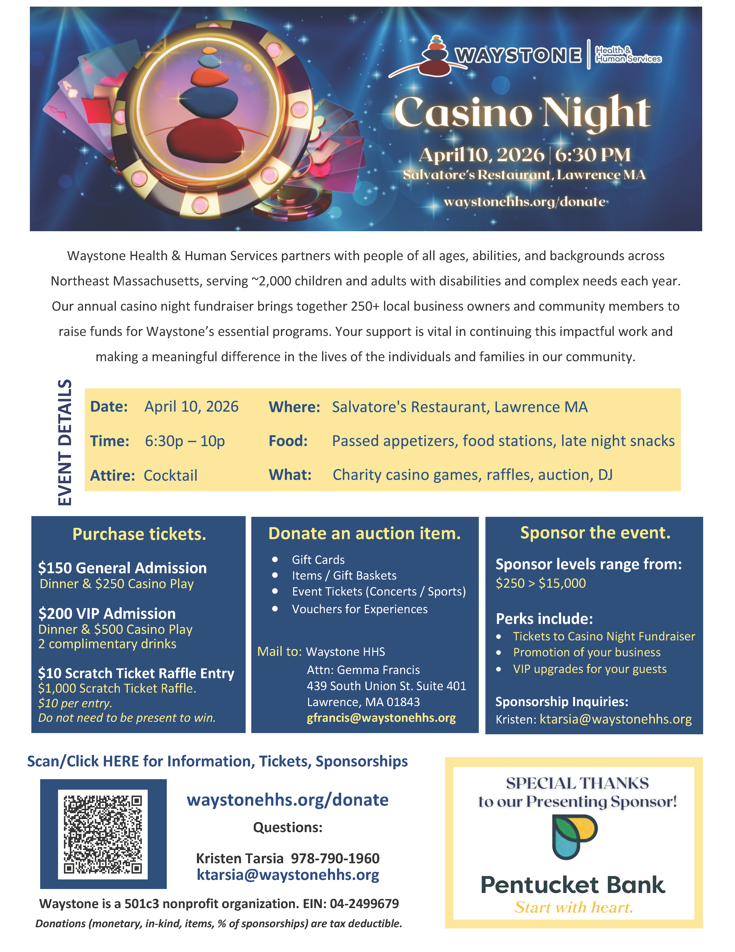 Join Waystone Health and Human Services for a fun-filled evening to support our efforts in the community.